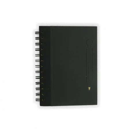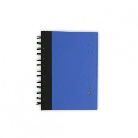 Con pasta dura, páginas en papel Craft y esfero integrado en la portada frontal.