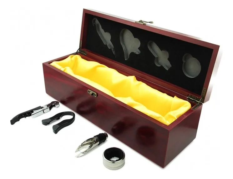 Cofre Bar Kit De Vino En Madera Descorchador 4 Accesorios Vinotinto
