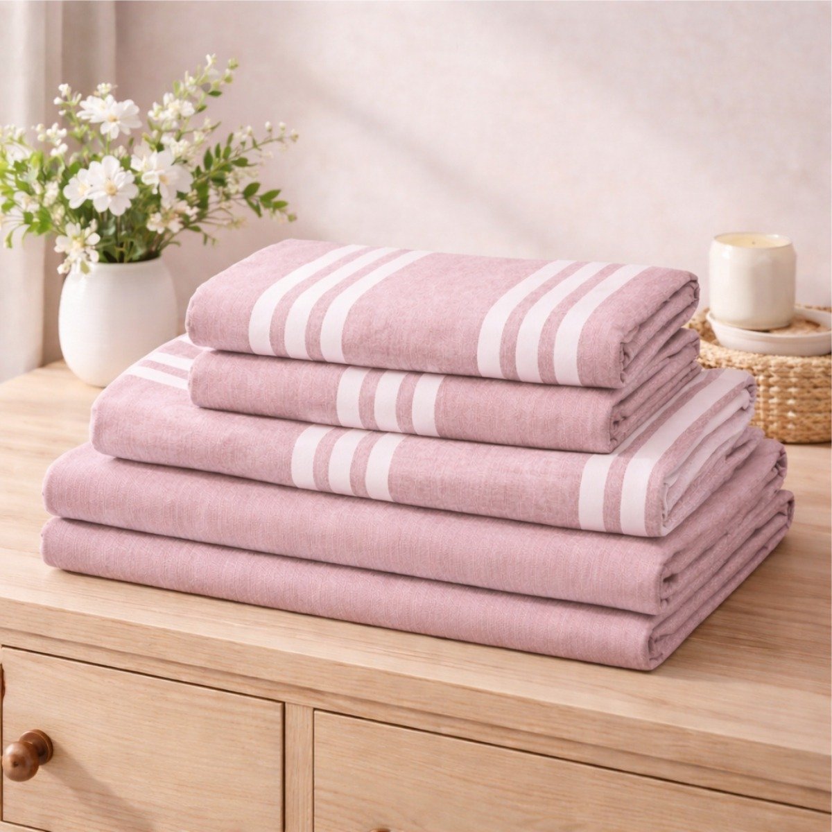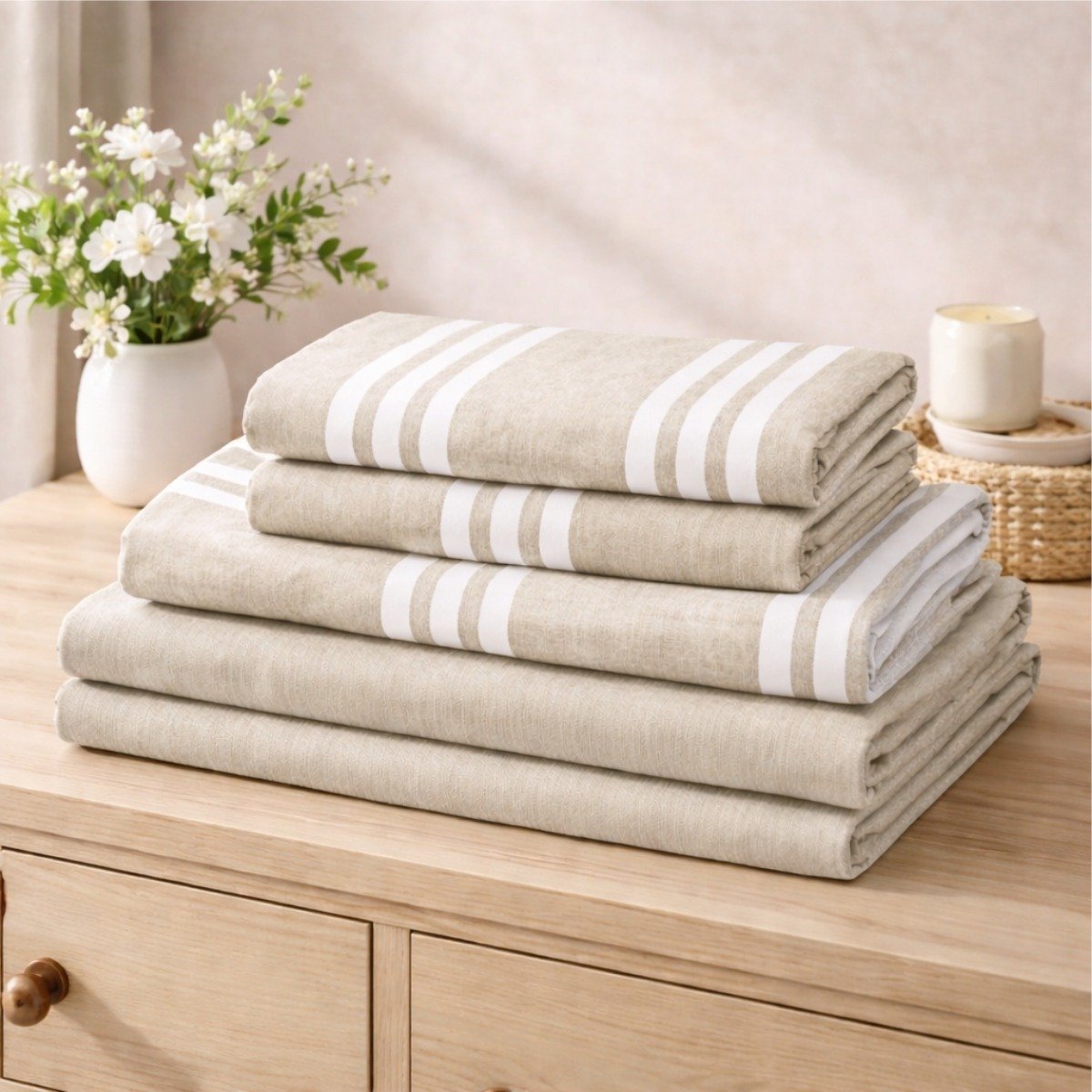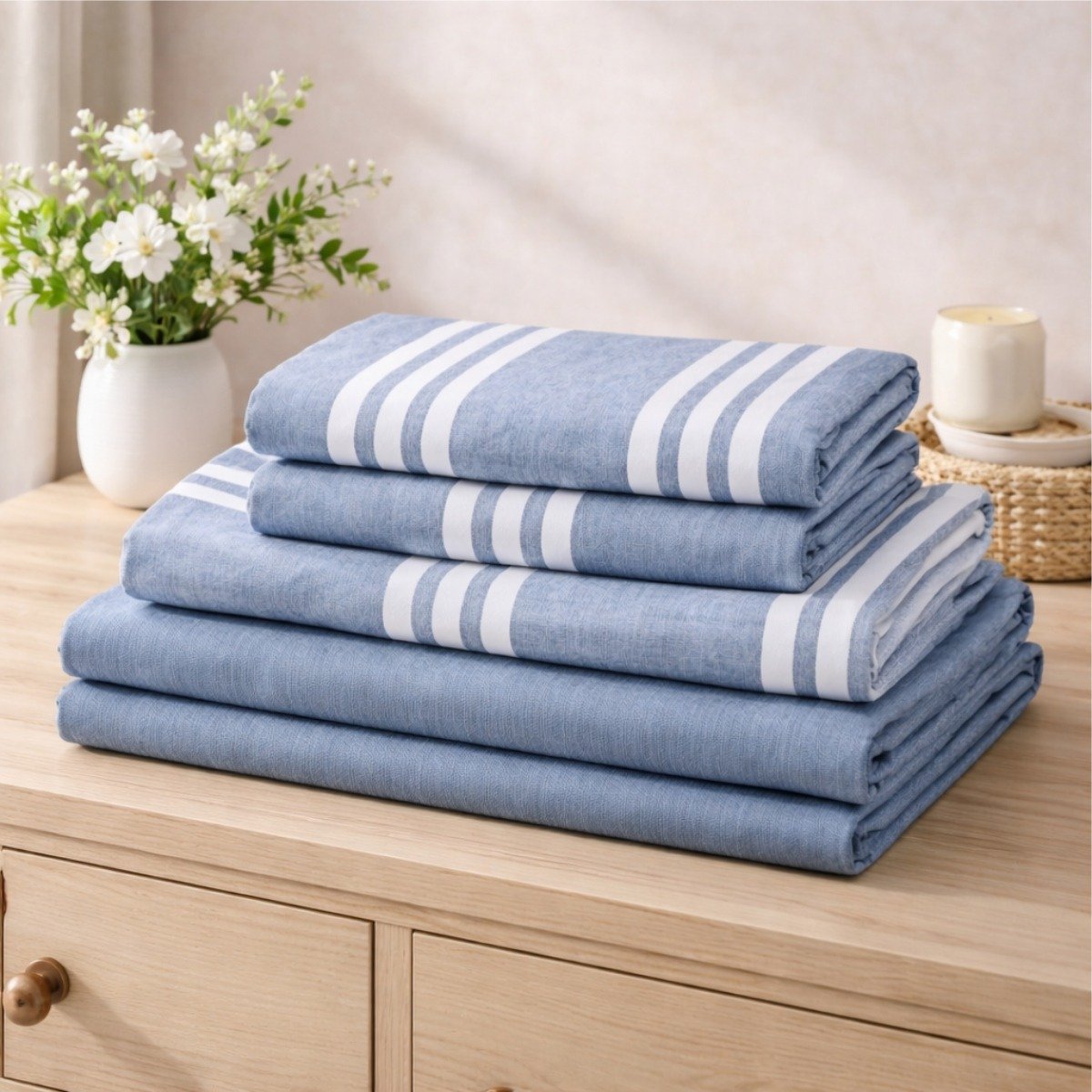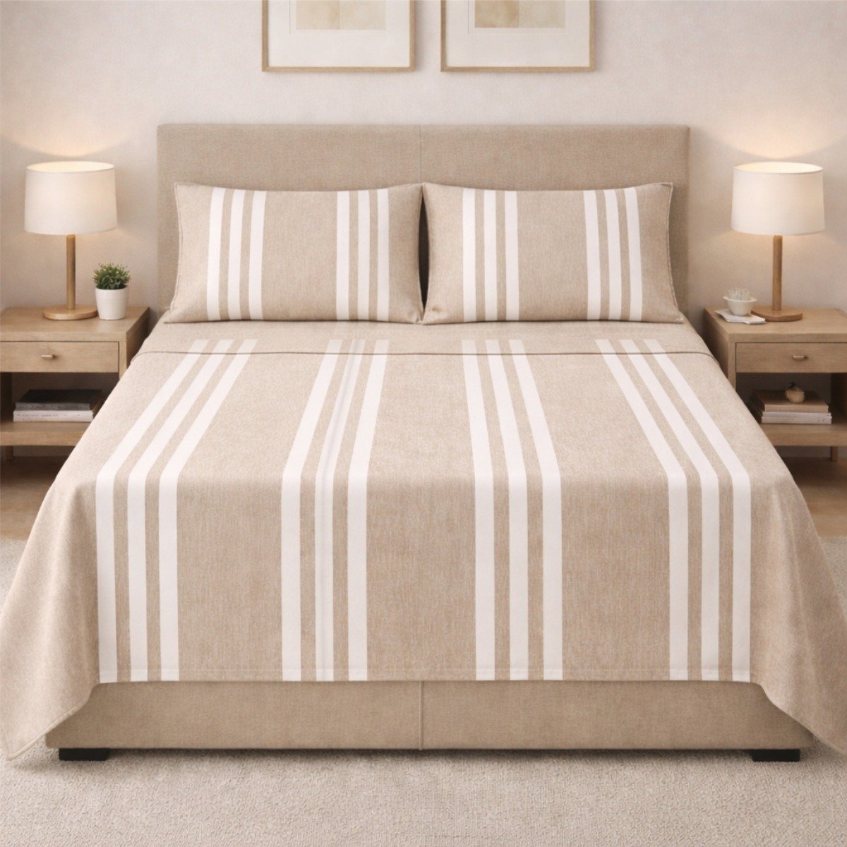 Descubre una nueva forma de descansar con el Juego de Sábanas Essential Stripes, diseñado para quienes buscan confort premium, elegancia atemporal y suavidad superior.