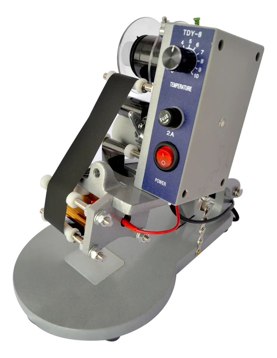 Producto diseñado para estampar. Cuenta con juego alfanumérico. Cantidad de impresiones 3.000 a 3.500. Especial para estampar empaques por medio de cinta térmica. Especial para imprimir sobre polietileno, polipropileno, propalcote, tapa de plástico. Posee tres líneas de impresión máxima de 11 caracteres. Tamaño de caracteres: 2mm ancho x 3mm alto. Operación manual según requerimiento del usuario. Programación de temperatura según el grosor del empaque. Voltaje: 110 V/60Hz. Calidad 100% Garantizada. Realizamos Envíos a toda Colombia Sin garantía