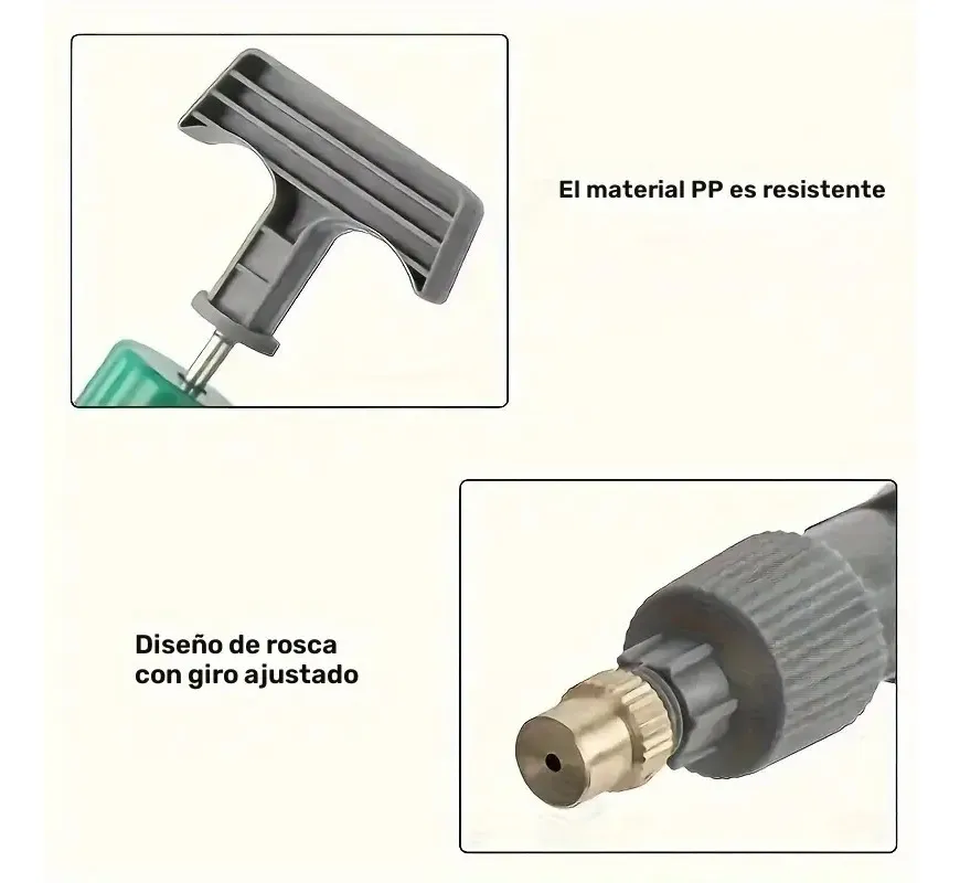 El Regador de Jardinería Multifuncional Rociador Pistola de Riego es la herramienta ideal para mantener tu jardín en perfectas condiciones. Diseñado con una variedad de funciones y características avanzadas, este regador ofrece una experiencia de riego eficiente y versátil: -Múltiples Modos de Riego: Ajusta fácilmente el tipo de rociado según tus necesidades, desde una suave niebla para plantas delicadas hasta un potente chorro para limpiar superficies. -Ergonomía y Comodidad: Diseñado con un mango antideslizante y un gatillo cómodo, permite un uso prolongado sin causar fatiga en las manos. -Construcción Duradera: Fabricado con materiales resistentes que aseguran una larga vida útil, soportando las condiciones más exigentes del jardín. -Fácil de Conectar y Usar: Compatible con la mayoría de las Botellas comerciales estándar, su conexión es rápida y segura, facilitando el riego sin complicaciones. Calidad 100% Garantizada. Realizamos Envíos a toda Colombia Sin garantía