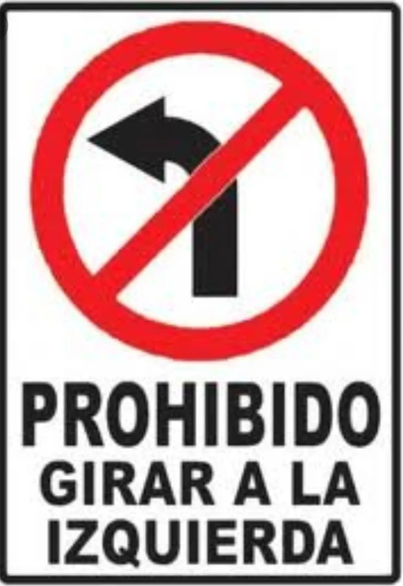 Señalización Aviso Metalico Prohibido Girar Izquierda20x15cm Blanco