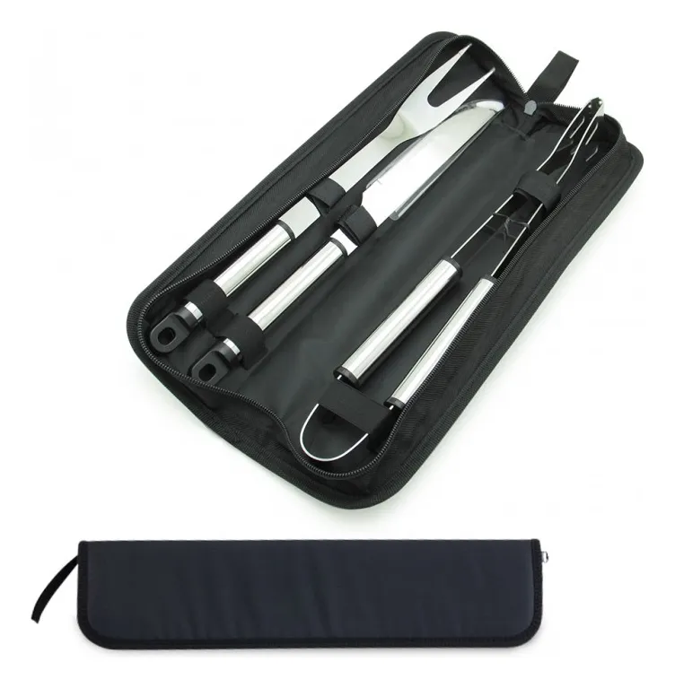 CONTIENE: 1 Maletín Transporte 3 utensilios para asados: Cuchillo, Tenedor y Pinzas MEDIDAS Ancho 8.8 cm Largo 37 cm Maletín Negro Calidad 100% Garantizada. Realizamos Envíos a toda Colombia Garantía de fábrica: 5 días