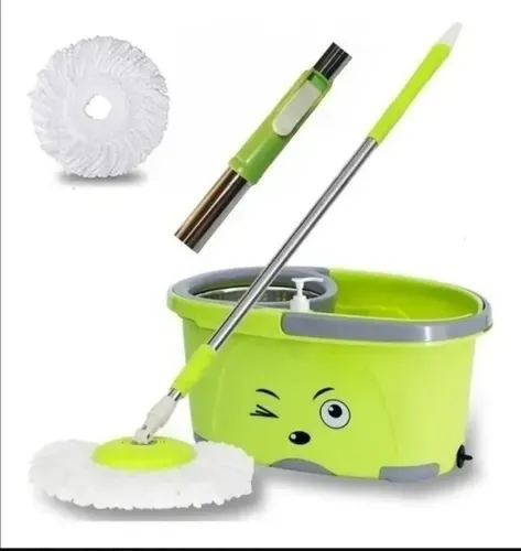 Por su exclusiva Mopa con cabezal Giratorio de 360º, permite limpiar fácilmente todo tipo de superficies. Por ser un producto de excelente absorción es capaz de limpiar grandes áreas en poco tiempo, permitiendo el ahorro de agua y detergentes. Para enjuagar y secar la mopa, se utiliza la cubeta o tambor en aluminio. Limpia 6 veces más rápido, absorbiendo hasta tres veces más humedad que los traperos tradicionales. Su práctico balde con rodachines te permite desplazarlo fácilmente de un lado a otro. Posee un tapón en la parte inferior del balde el cual permite sacar el agua del balde sin ningún esfuerzo.